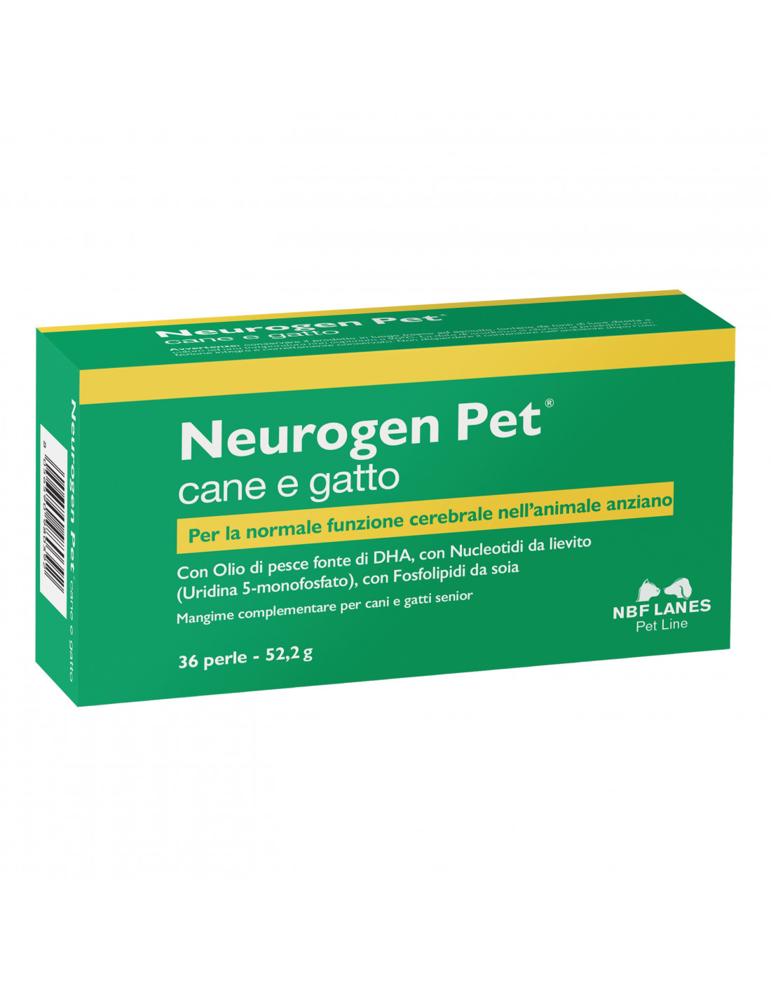 Neurogen Pet perle è un mangime complementare per cani e gatti anziani formulato con olio di pesce, nucleotidi e fosfolipidi da soia per la normale funzione cerebrale.