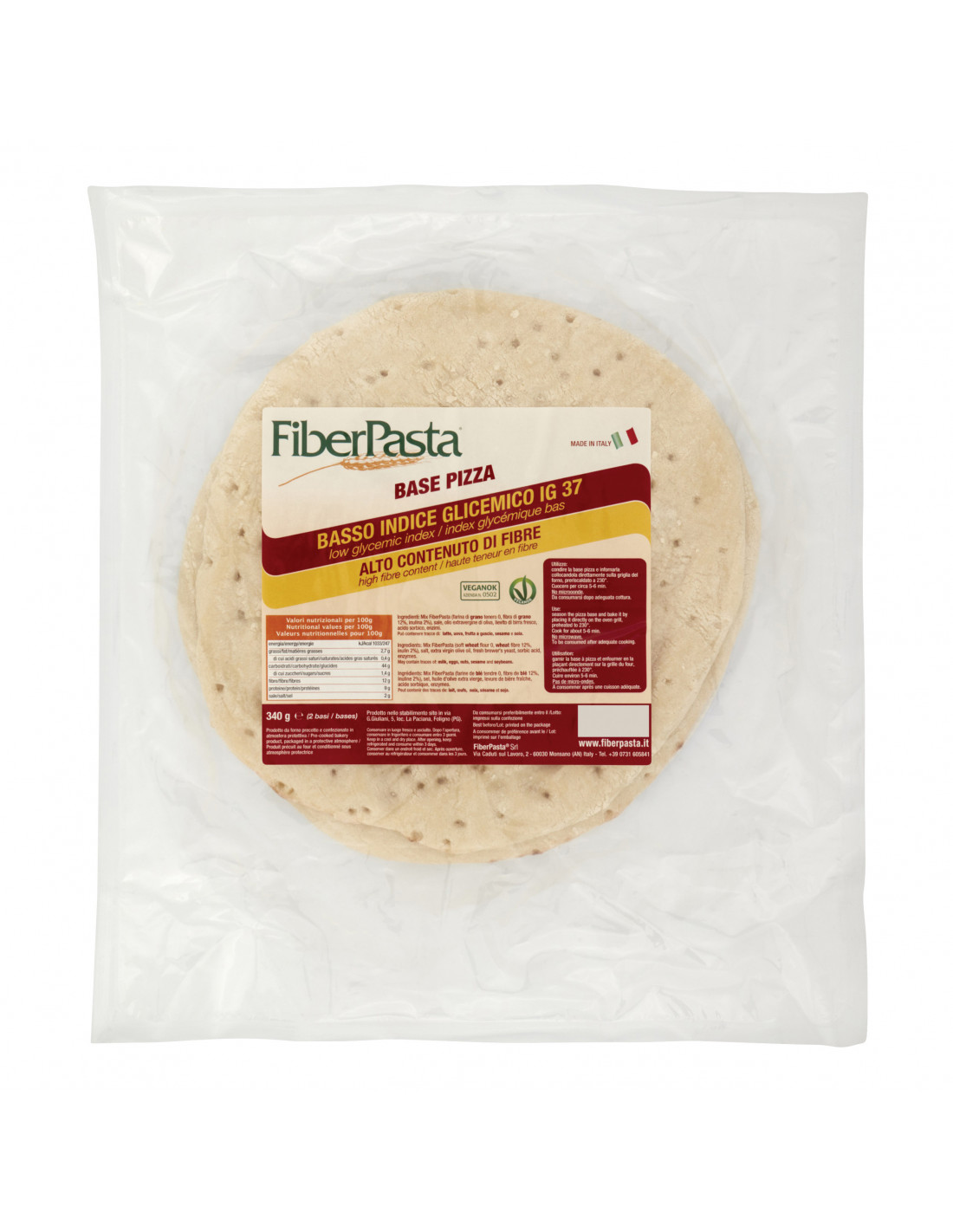 Fiberpasta Base Per Pizza Senza Lievito 340 G
