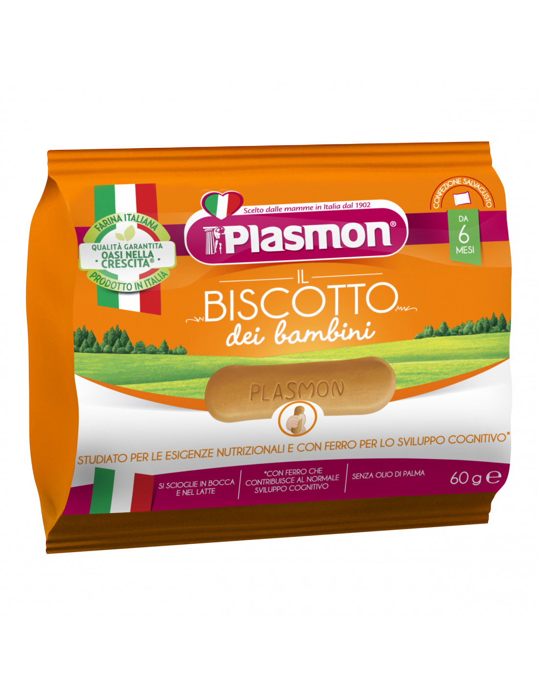 L'esclusiva ricetta del Biscotto Plasmon, con calcio, ferro e vitamine selezionate, è attentamente studiata per accompagnare il bambino durante la crescita.