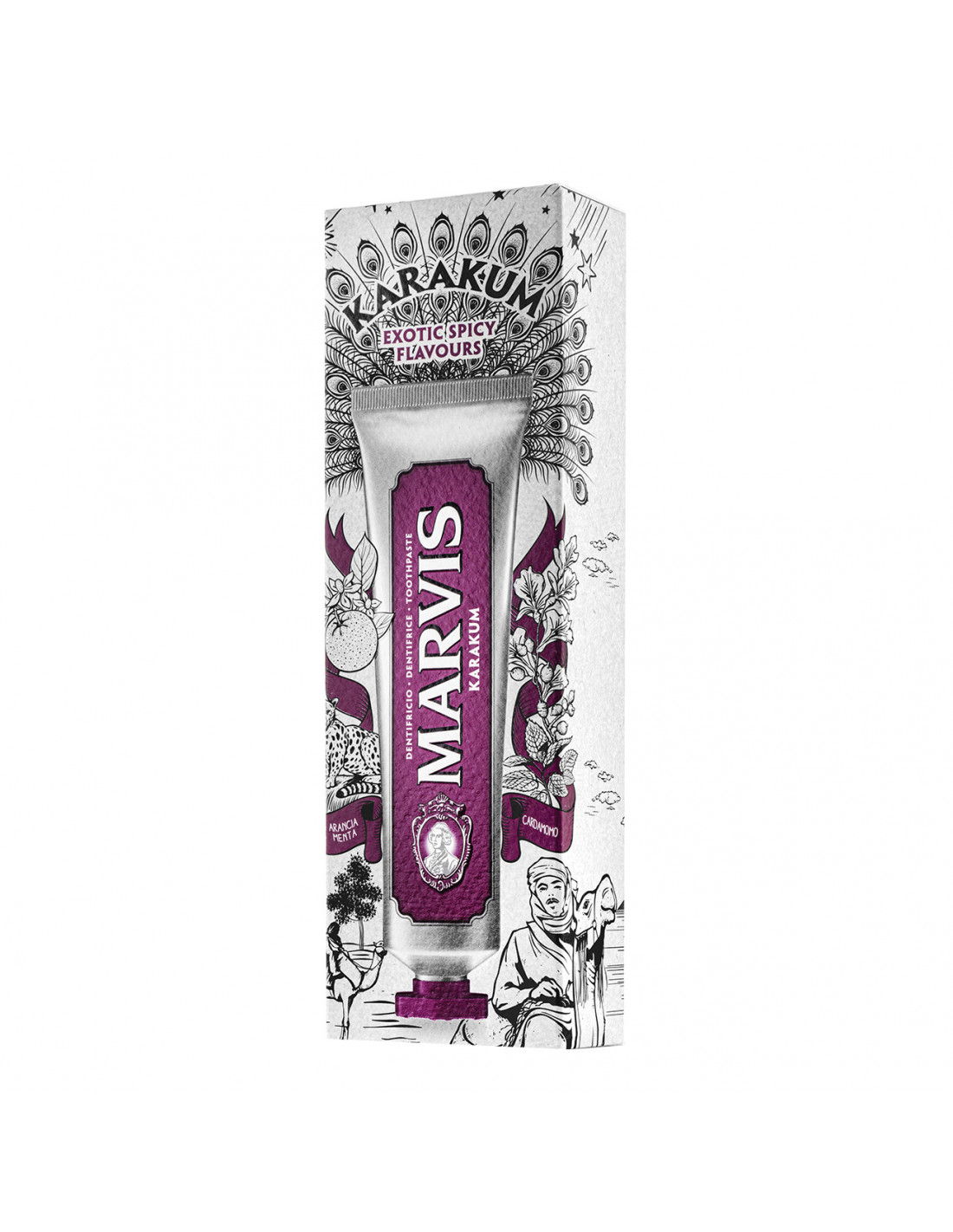 Un dentifricio dal sapore sofisticato che combina la menta più fine con la dolcezza del succo d'arancia e l'incantato e aromatico cardamomo, una rara spezia orientale per creare una duratura sensazione di freschezza seducente.