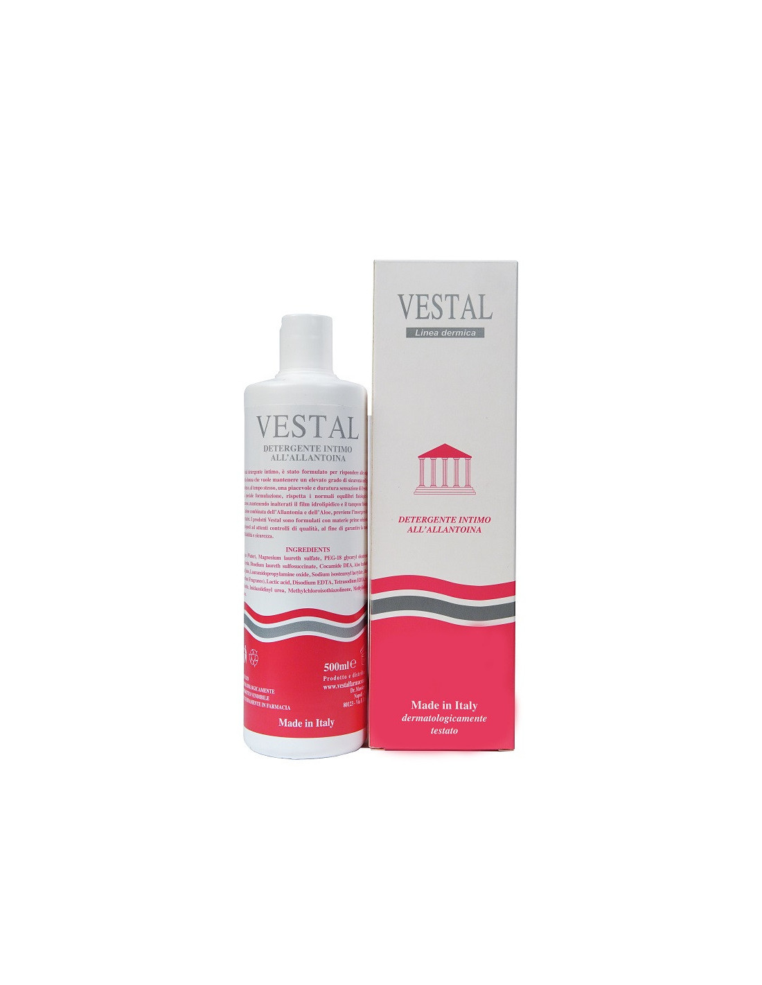 Vestal detergente intimo è formulato per rispondere alle esigenze della donna che vuole mantenere un elevato grado di sicurezza nell'igiene intima e, al tempo stesso, una piacevole e duratura sensazione di freschezza. La speciale formulazione rispetta i normali equilibri fisiologici delle mucose, mantenendo inalterati il film idrolipidico e il tampone fisiologico. L'azione combinata dell'Allantoina e dell'Aloe previene l'insorgere di stati irritativi. I prodotti vestal sono formulati con materie prime selezionate e sottoposti ad attenti controlli di qualità, al fine di garantire la massima affidabilità e sicurezza.