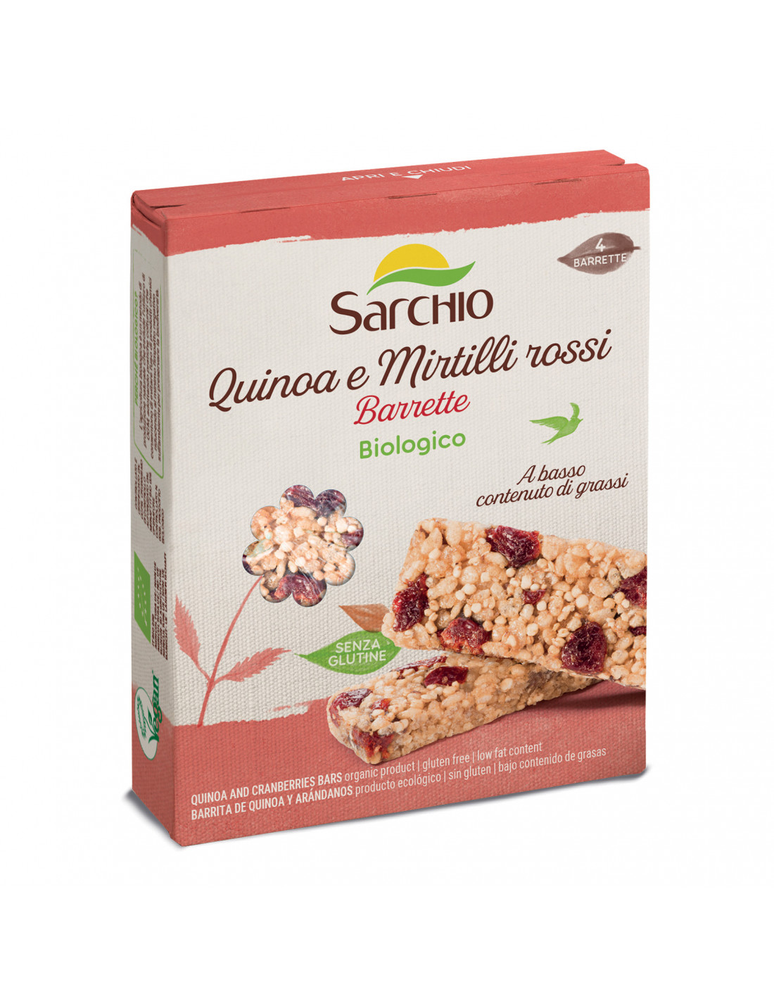 Barretta morbida biologica, senza glutine. Preziosi chicchi di quinoa uniti a morbide e succose bacche di mirtilli rossi, che valorizzano il gusto e la piacevolezza di questo snack delicato a basso contenuto di grassi. Difficile resistere ad una pausa così golosa e ricca di benessere.