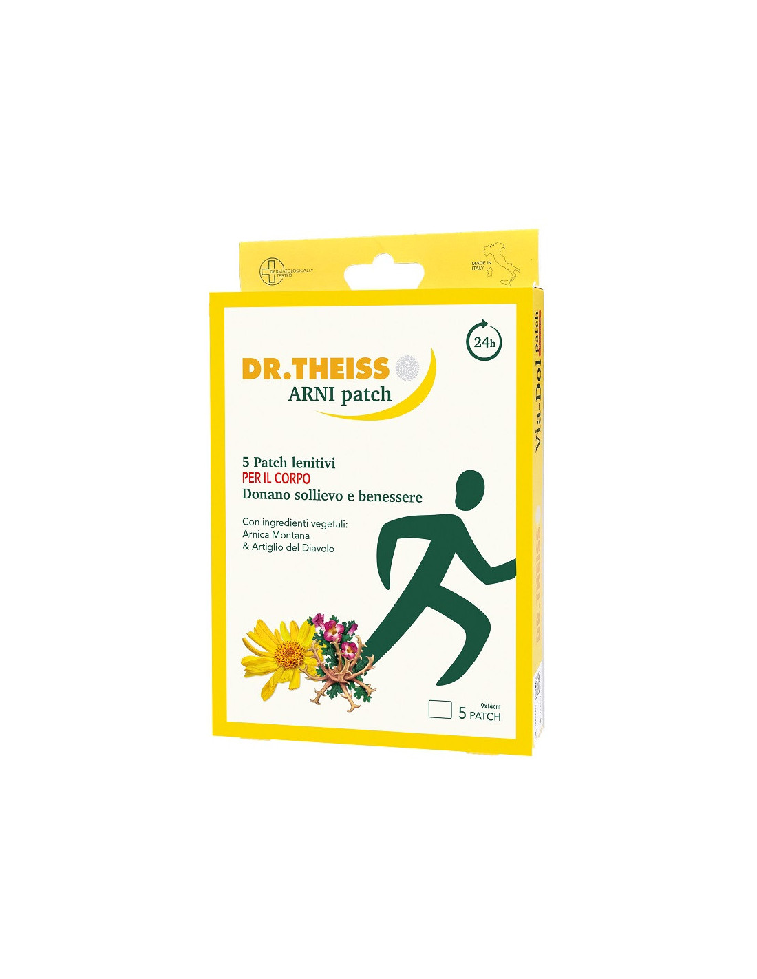 Patch cosmetici formulati con estratti vegetali tra cui Arnica montana e artiglio del diavolo, per donare una sensazione di sollievo nella zona cutanea in cui è applicato. La formula è studiata per lenire e mantenere in equilibrio lo stato di salute della pelle. La speciale tecnologia garantisce l’azione dei patch per 24 ore.