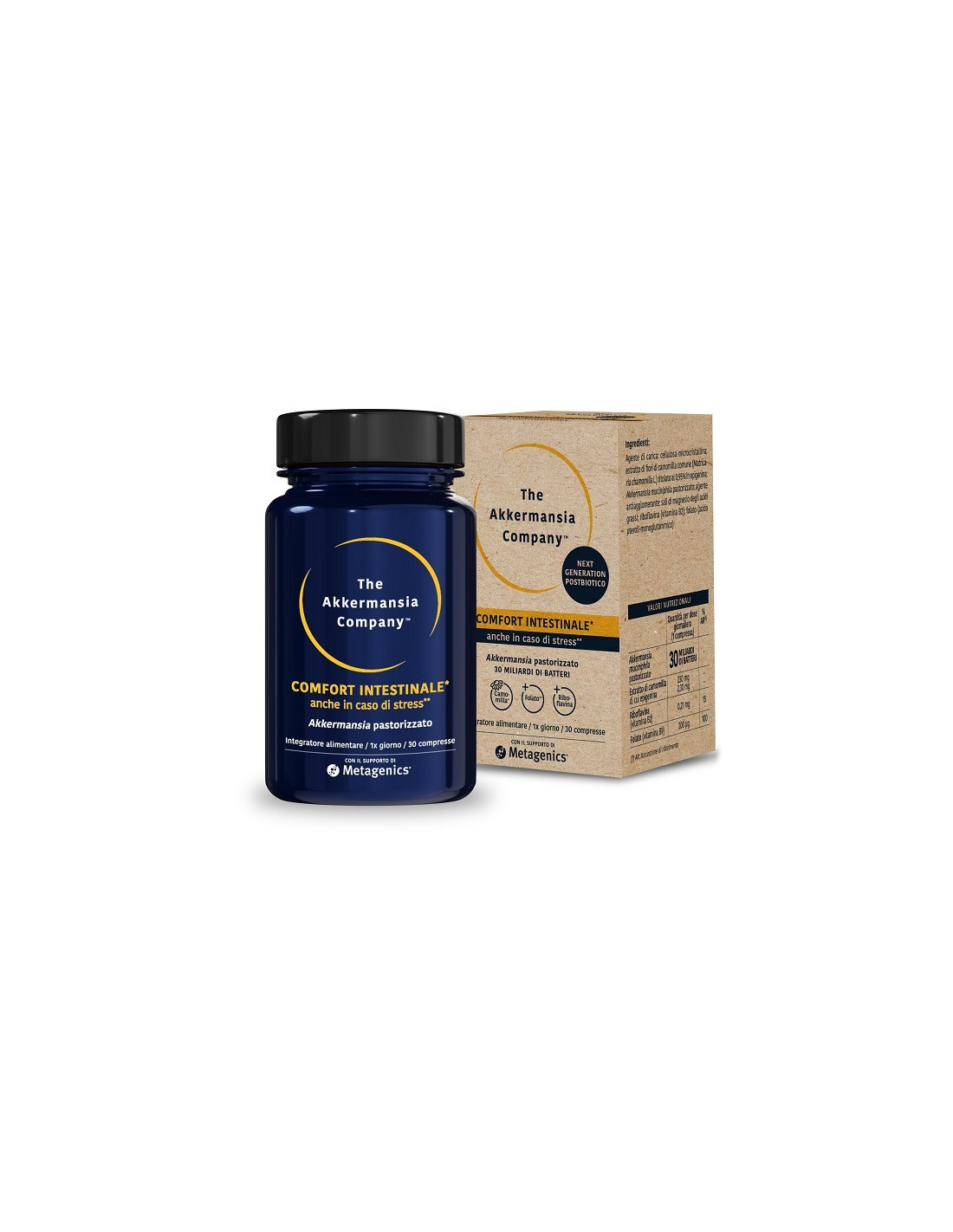 (1 compressa) %VNR* Akkermansia municiphila pastorizzato 30 miliardi di batteri Estratto di camomilla