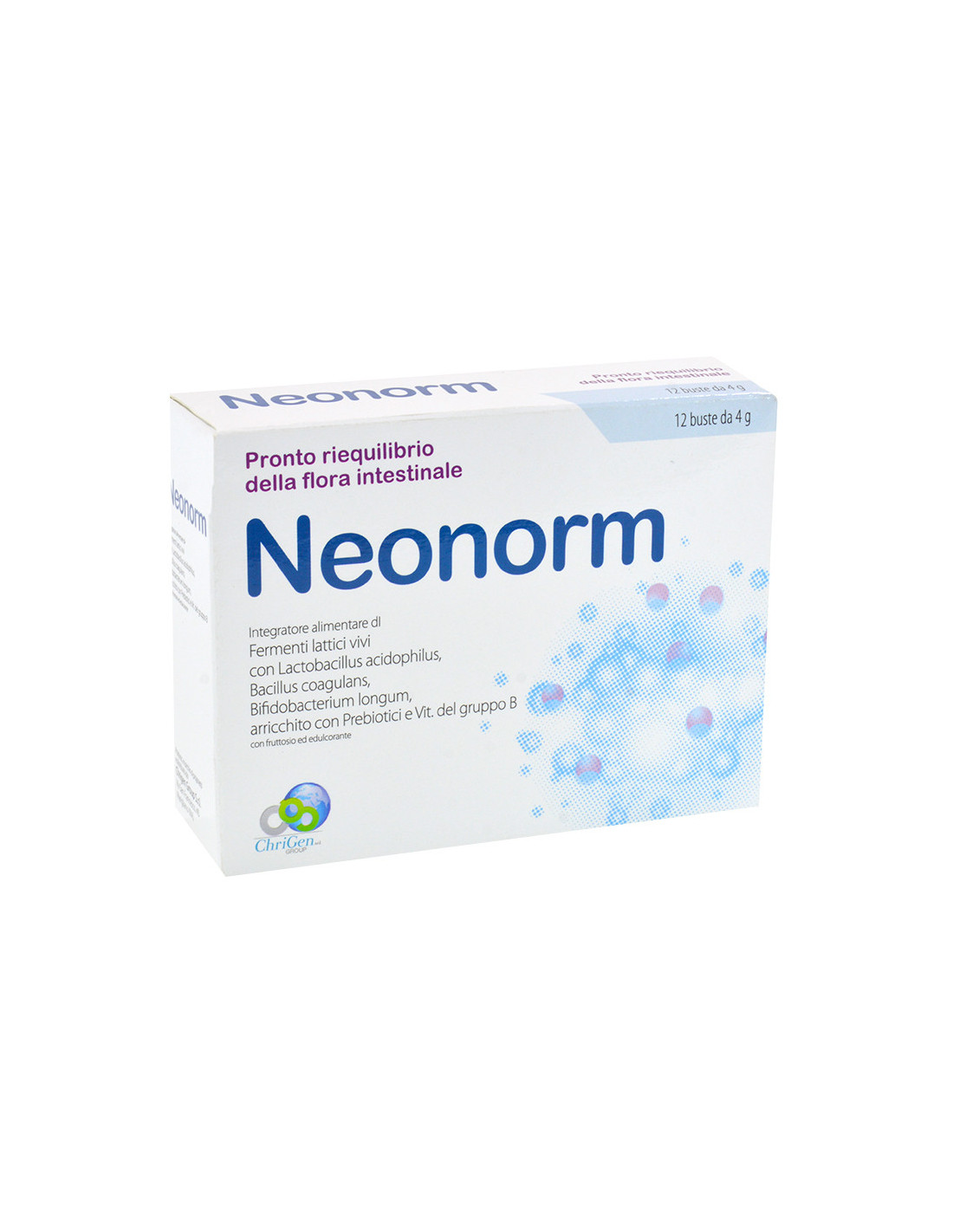 Complemento alimentare di fermenti lattici, per il normale equilibrio della flora batterica intestinale. E’ importante per il benessere intimo della donna. È costituito da un’associazione sinergica di Bifidobacterium Longum SP46 (5mld), Bacillus CoagulansBC513 (1mld), Lactobacillus Acidophilus LA3(1mld), fruttoligosaccaridi e vitamine del gruppo B. L’azione combinata di tali componenti, favorisce il riequilibrio dell’ecosistema intestinale che può risultare alterato a causa di fattori alimentari, stress o assunzione di antibiotici. I Probiotici di Neonorm sono riconosciuti QPS: inclusi nella lista dei microrganismi di uso consolidato e sicuro.Ingredienti