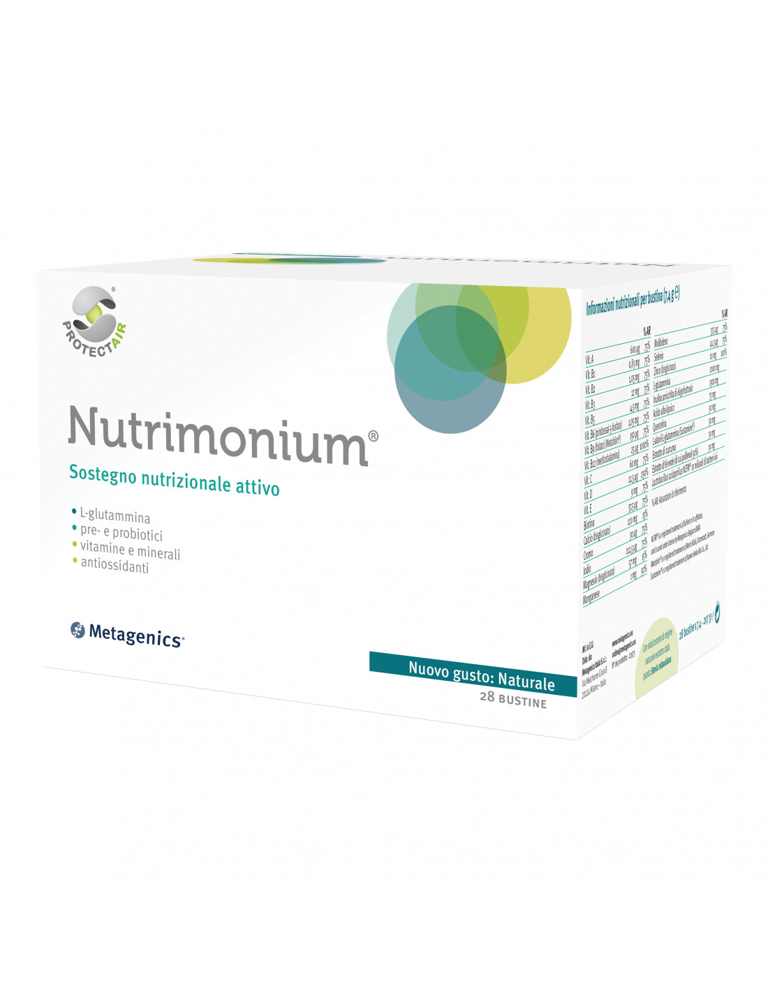 (7,4 g) %VNR* Vitamina A (beta-carotene) 600 mcg 75% Vitamina B1 (cloridrato di tiamina) 0,83 mg 75% Vitamina B2 (riboflavina) 1,05 mg 75% Vitamina B3 (niacinamide) 12 mg 75% Vitamina B5 (pantotenato di calcio) 4,5 mg 75% Vitamina B6 (piridossal-5-fosfato) 1,05 mg 75% Folato (Metafolin) 150 mcg 75% Vitamina B12 (metilcobalamina) 25 mcg 1.000% Vitamina C (acido ascorbico) 60 mg 75% Vitamina D (colecalciferolo) 12,5 mcg 250% Vitamina E (tocoferolo misti) 9 mg 75% Biotina 37,5 mcg 75% Calcio (bisglicinato) 120 mg 15% Cromo 30 mcg 75% Iodio 112,5 mcg 75% Magnesio (bisglicinato) 57 mg 15% Manganese 1 mg 50% Molibdeno 37,5 mcg 75% Selenio 41,3 mcg 75% Zinco (bisglicinato) 10 mg 100% L-glutammina 2.000 mg Inulina arricchita di oligofruttosio 1.500 mg Quercetina 50 mg L-alanil-L-glutammina 50 mg Estratto di curcuma (Cavamax) 30 mg Estratto di tè verde