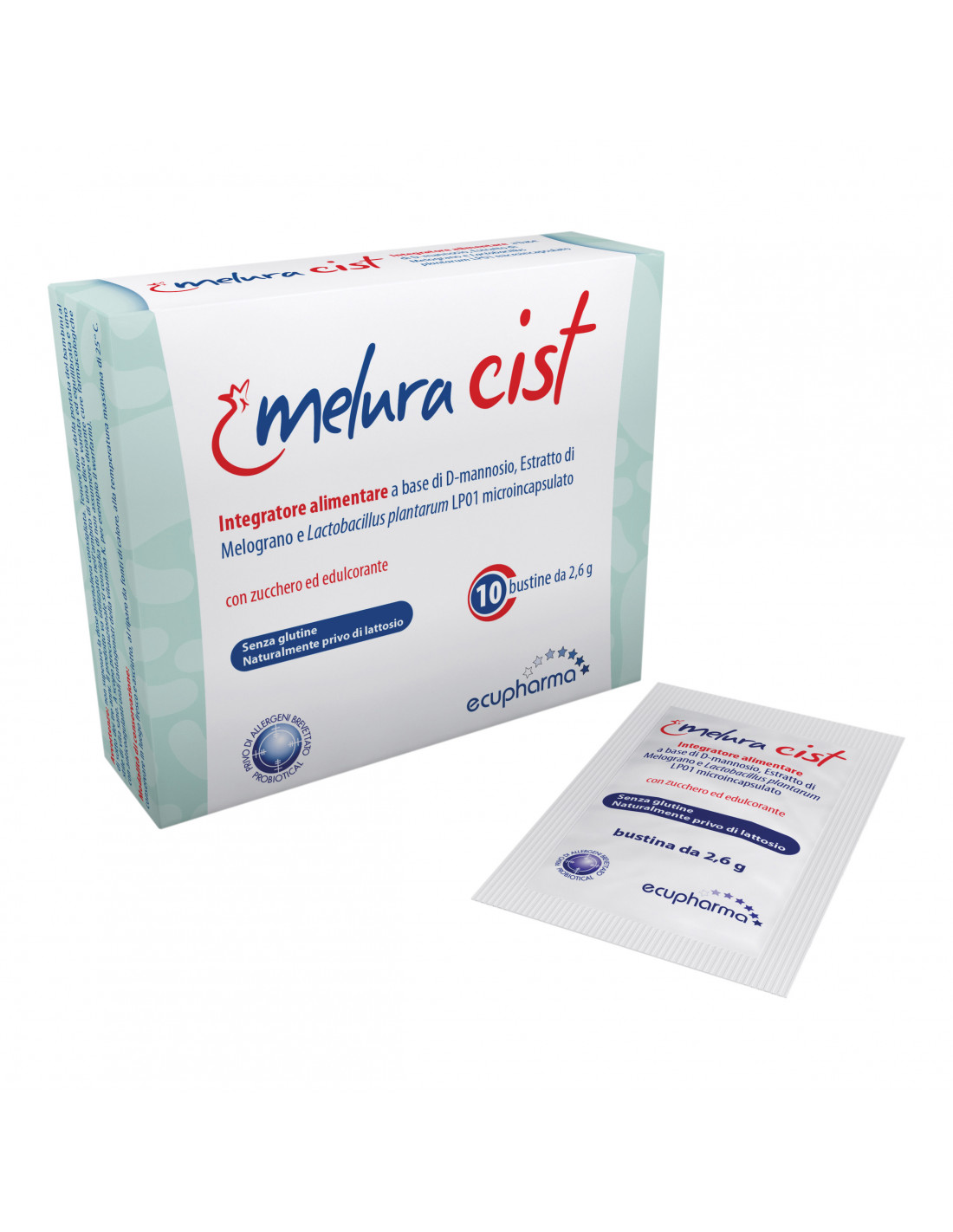 Melura cist è attestato privo di allergeni, secondo brevetto Probiotical, ossia privo di tutti gli allergeni secondo la normativa vigente (All. II Reg. UE 1169/2011).