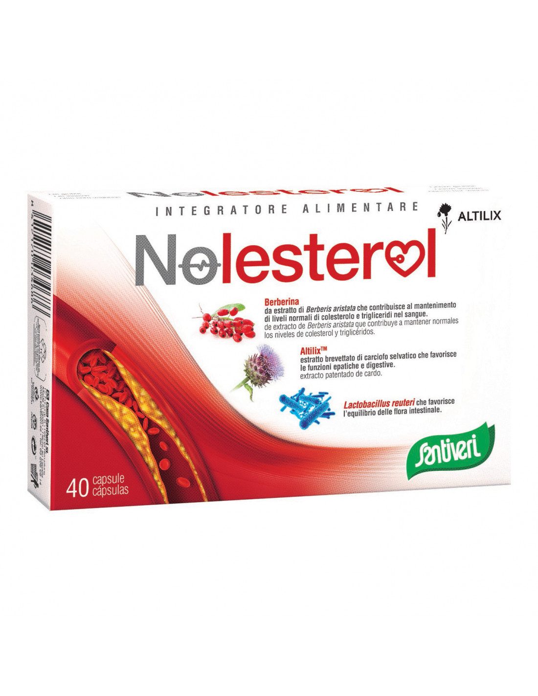 Integratore alimentare con berberina da Berberis aristata, che contribuisce al mantenimento di livelli normali di colesterolo e trigliceridi nel sangue. Altilix, estratto brevettato di carciofo selvatico, favorisce le funzioni epatiche e digestive. Apporta inoltre Lactobacillus reuteri DSM 25175, un ceppo selezionato di probiotici che favorisce l'equilibrio della flora intestinale.