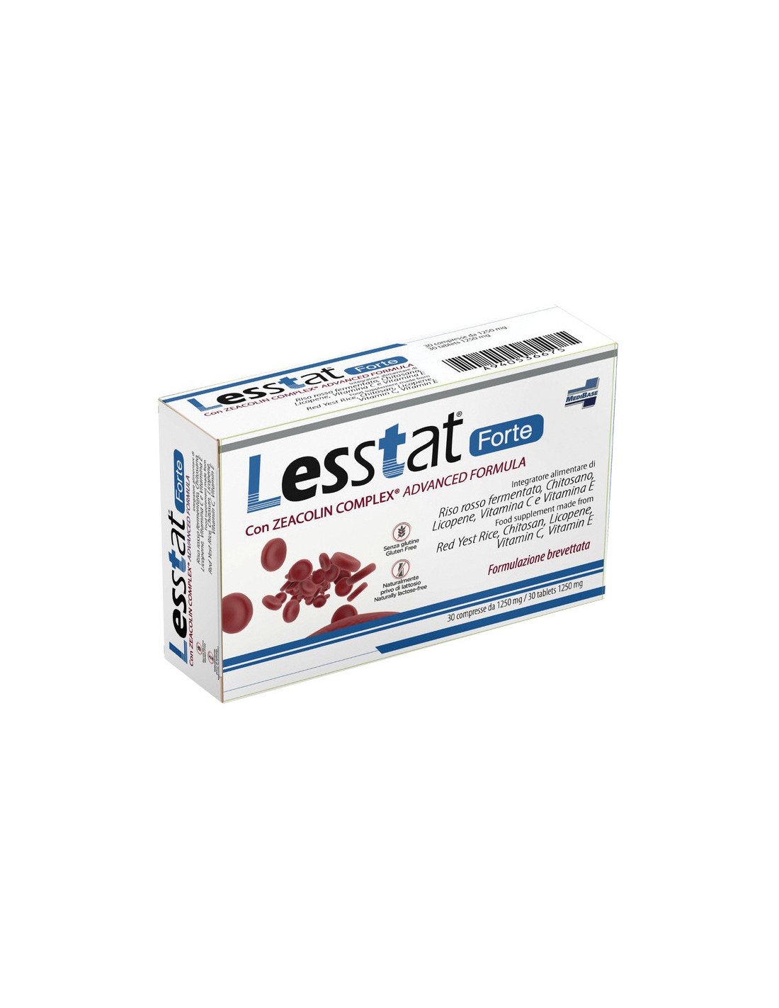 Integratore alimentare di riso rosso fermentato, chitosano, licopene, vitamina C e vitamina E utile in caso di diminuito apporto od aumentato fabbisogno di tali nutrienti. Lesstat Forte deve essere sempre utilizzato come integrazione, associata ad un corretto stile di vita (alimentazione controllata e bilanciata ed attività sica regolare).