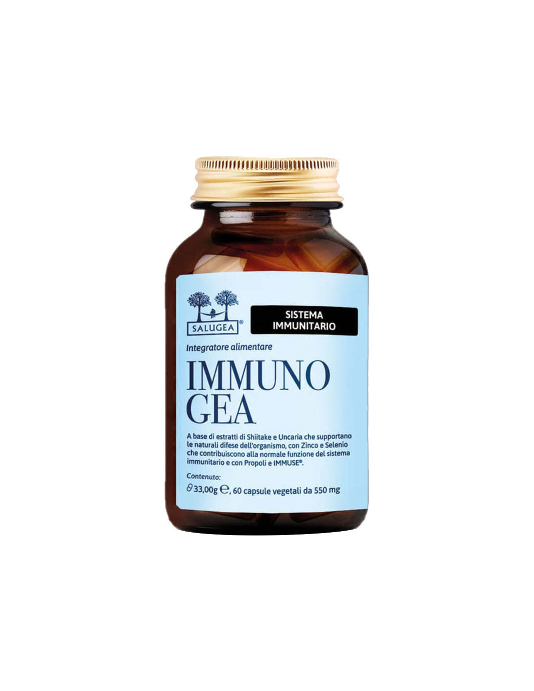 Integratore alimentare a base di estratti di shiitake e Uncaria che supportano le naturali difese dell'organismo, con zinco e selenio che contribuiscono alla normale funzione del sistema immunitario e con propoli e IMMUSE.
