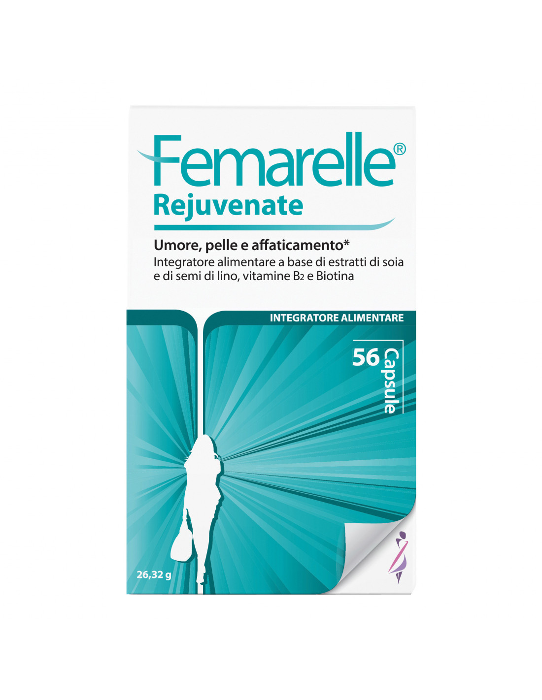 Integratore alimentare a base di estratti di soia e di semi di lino, vitamine B2 e biotina. Indicato per migliorare l'umore, la pelle e combattere la stanchezza.
