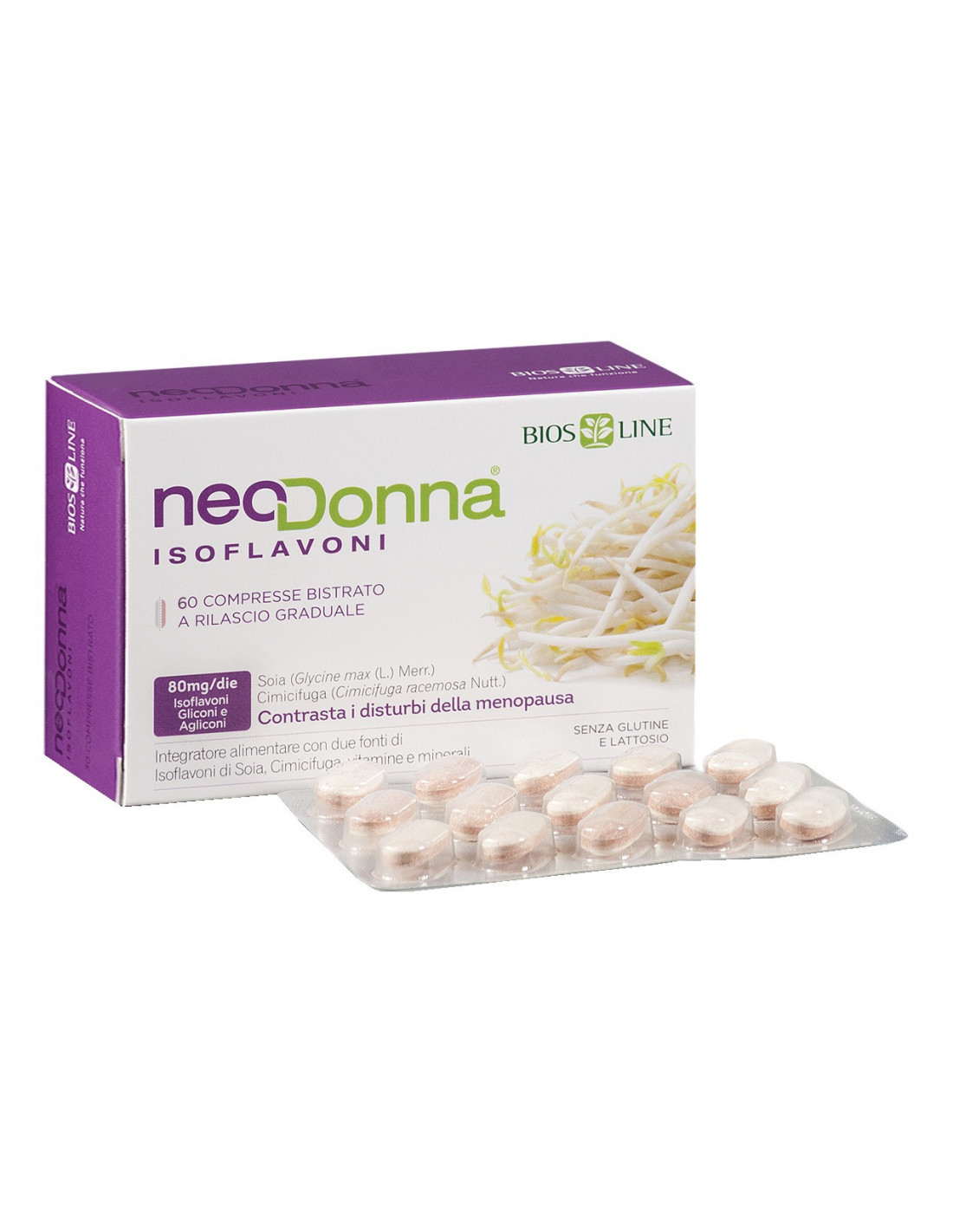 Integratore di isoflavoni di soia, cimicifuga, vitamine e minerali utile per contrastare i disturbi che possono verificarsi in menopausa. Due fonti di isoflavoni: mix calibrato di isoflavoni da soia fermentata e soia non fermentata, in una forma a due strati che ne favorisce un’assimilazione graduale, nell’arco della giornata. I fitoestratti di soia e cimicifuga sono utili per contrastare i disturbi della menopausa.