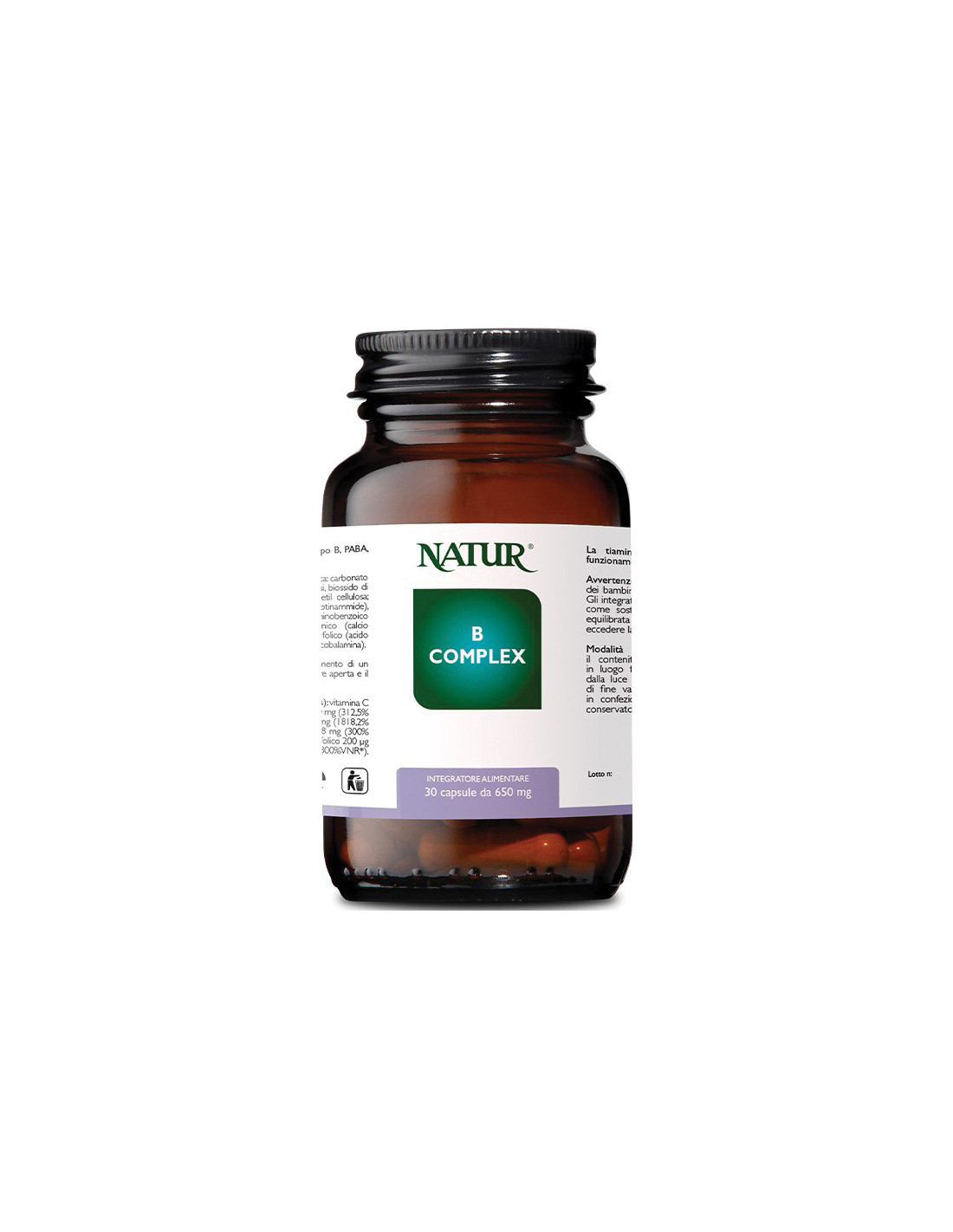 Integratore alimentare a base dell'intero complesso di vitamine del gruppo B per il benessere del sistema nervoso e della corretta regolazione ormonale. Il magnesio, la vitamina B1 (tiamina), la vitamina B8 (biotina), la vitamina B6, la vitamina B12 e la vitamina C contribuiscono alla normale funzione psicologica, al metabolismo energetico e al normale funzionamento del sistema nervoso. La tiamina contribuisce inoltre alla normale funzione cardiaca, mentre la vitamina C, la riboflavina, la vitamina B12, il folato e la vitamina B6 contribuiscono alla riduzione della stanchezza e dell'affaticamento e alla protezione delle cellule dallo stress ossidativo. L'acido pantotenico contribuisce alla normale sintesi e al normale metabolismo degli ormoni steroidei, della vitamina D e di alcuni neurotrasmettitori; contribuisce, inoltre, a prestazioni mentali normali. Il folato contribuisce alla normale funzione psicologica, mentre la colina contribuisce al normale metabolismo dell'omocisteina, al normale metabolismo dei lipidi e al mantenimento della normale funzione epatica. Le materie prime usate sono OGM free e non irradiate. Adatto a bambini e in gravidanza.