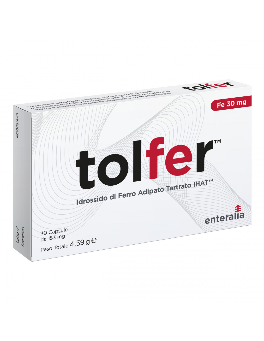 Ferro idrossido adipato tartrato (nano) (IHAT); involucro della capsula: ipromellosa; colorante: complesso di rame delle clorofilline (E141); antiagglomerante: magnesio stearato.