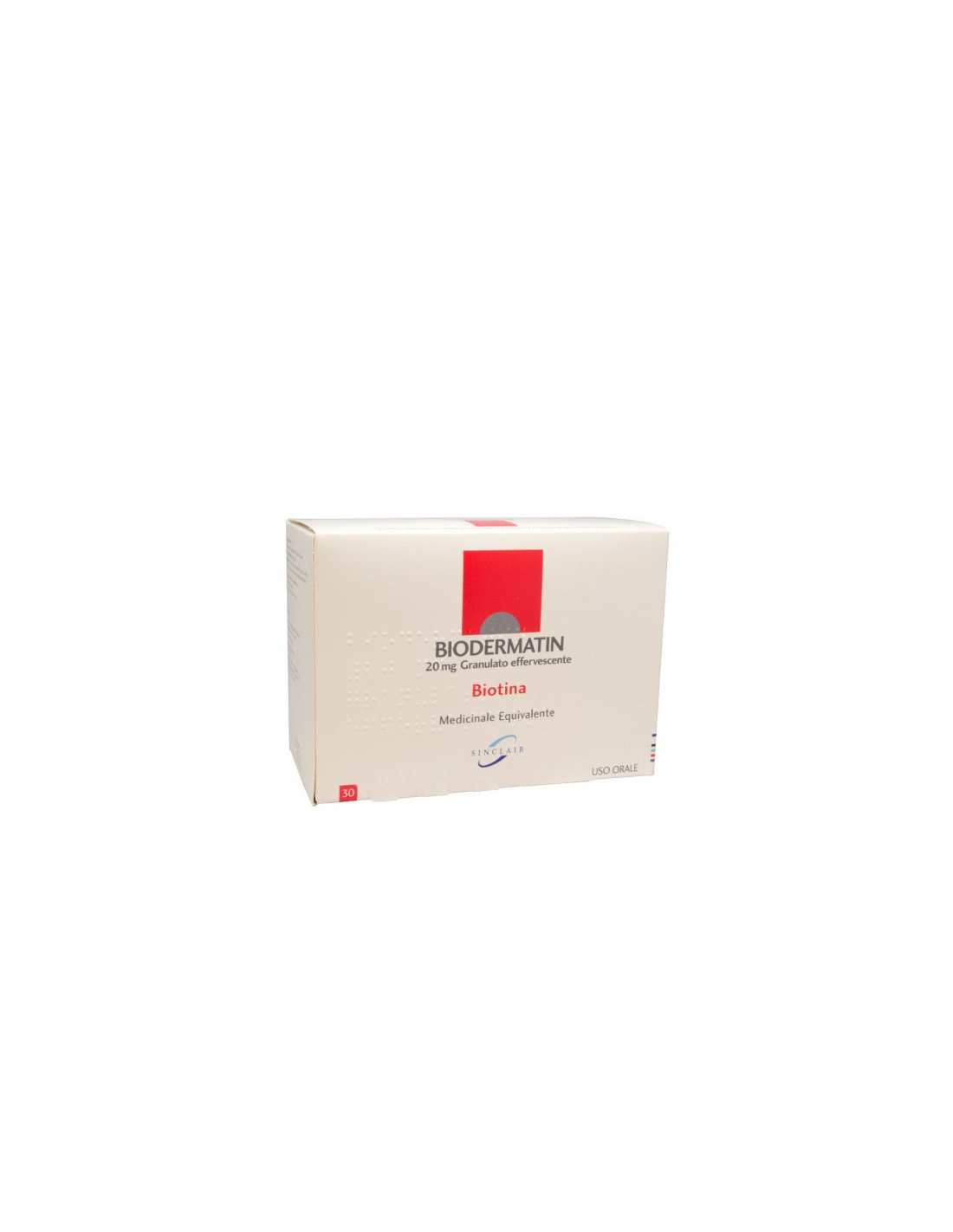 Interferenza con esami clinici di laboratorio: La biotina può interferire con i test diagnostici di laboratorio basati sull’interazione biotina/streptavidina, producendo risultati falsamente diminuiti o falsamente aumentati, a seconda del test utilizzato. Il rischio di interferenza è maggiore nei bambini e nei pazienti con insufficienza renale e aumenta all’aumentare della dose. Nell’interpretazione dei risultati degli esami di laboratorio devono essere prese in considerazione possibili interferenze della biotina, specialmente se si osserva una mancanza di coerenza con la presentazione clinica (ad esempio, risultati di esami tiroidei che suggeriscono la malattia di Graves in pazienti asintomatici che assumono biotina o risultati falsi negativi dell’esame della troponina in pazienti con infarto miocardico che assumono biotina). Nei casi di sospetta interferenza occorre utilizzare, se disponibili, test diagnostici alternativi non sensibili a interferenze con la biotina. È necessario consultare il personale di laboratorio quando si prescrivono esami di laboratorio in pazienti che assumono biotina. Biodermatin 5 mg compresse contiene sodio: Questo medicinale contiene meno di 1 mmol (23 mg) di sodio per compressa, cioè essenzialmente “senza sodio”. Biodermatin 20 mg granulato effervescente contiene saccarosio: I pazienti affetti da rari problemi ereditari di intolleranza al fruttosio, da malassorbimento di glucosiogalattosio, o da insufficienza di sucrasi isomaltasi, non devono assumere questo medicinale. Questo medicinale contiene 3,234 g di saccarosio per bustina. Da tenere in considerazione in persone affette da diabete mellito. Biodermatin 20 mg granulato effervescente contiene sodio: Questo medicinale contiene 26,83 mg di sodio per bustina, equivalente a 1,34% dell’assunzione massima giornaliera raccomandata dall’OMS che corrisponde a 2 g di sodio per un adulto.
