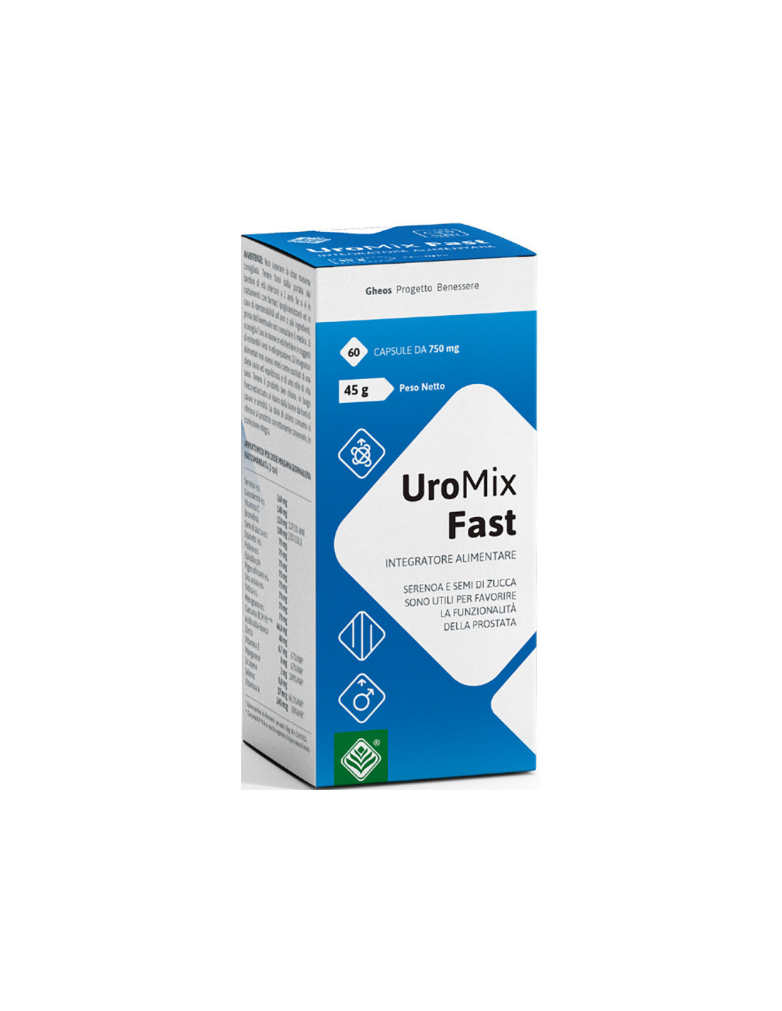 Uromix fast è un integratore alimentare ideato specificamente per l’uomo a base di estratti vegetali utili per favorire la funzionalità della prostata (serenoa e semi di zucca), la funzionalità delle vie urinarie e il drenaggio dei liquidi corporei (equiseto, uva ursina e ortica), con vitamina C, vitamina E, zinco, selenio e manganese, che contribuiscono alla protezione delle cellule dallo stress ossidativo.