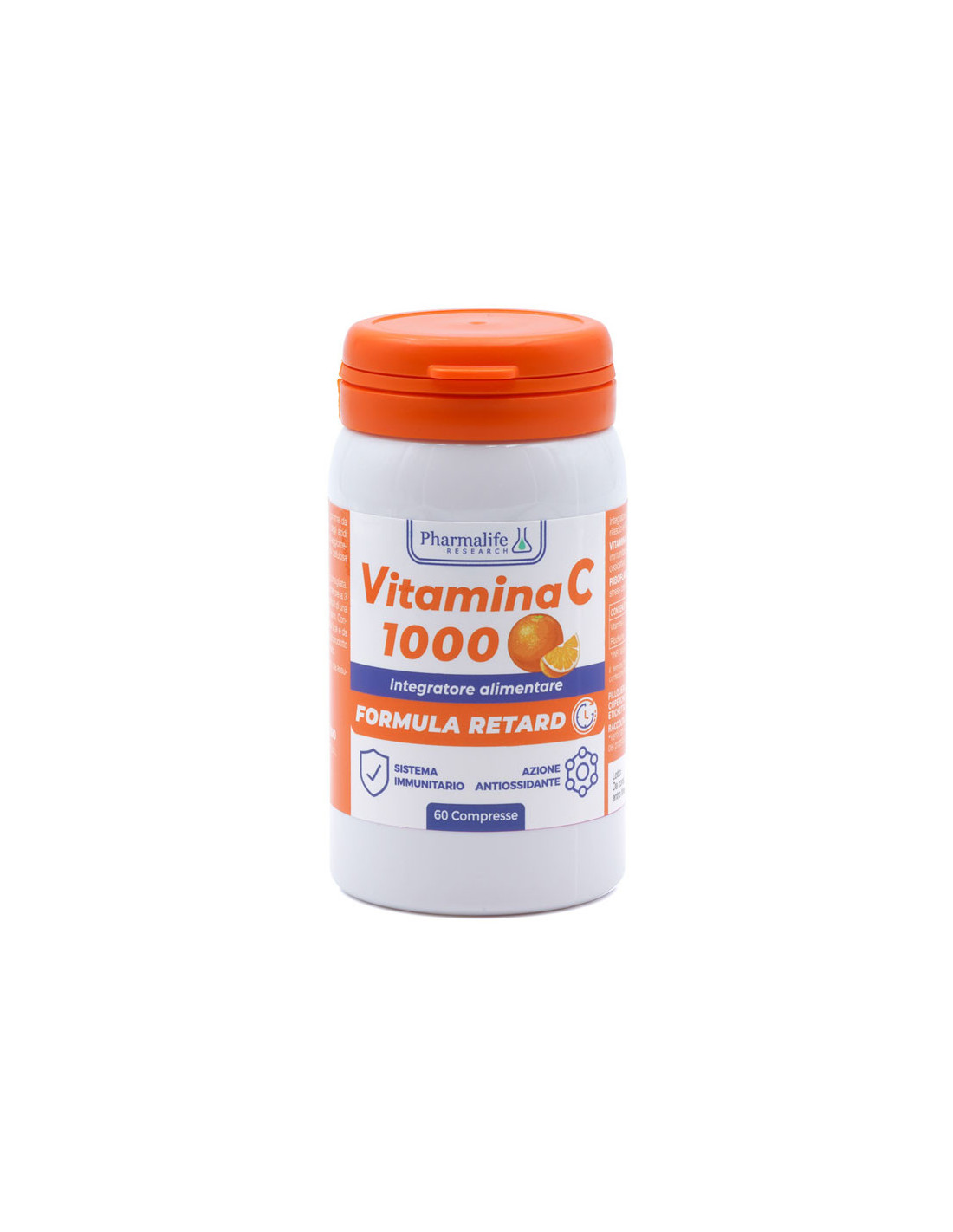 Integratore alimentare a base di vitamina C e riboflavina con formula retard studiata per garantire un apporto prolungato nel tempo a distanza dall’assunzione dei nutrienti contenuti.