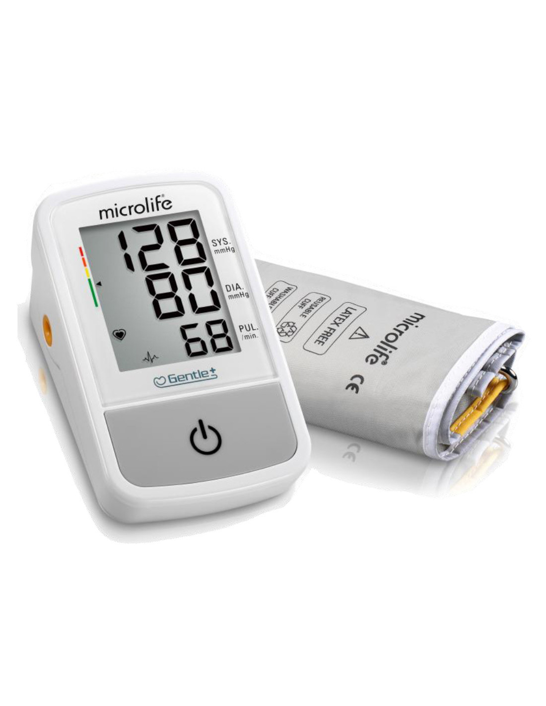 Tecnologia Gentle +, per una misurazione più confortevole. Bracciale universale morbido e conico, 22-42 cm. Tecnologia PAD, per la rilevazione delle aritmie.