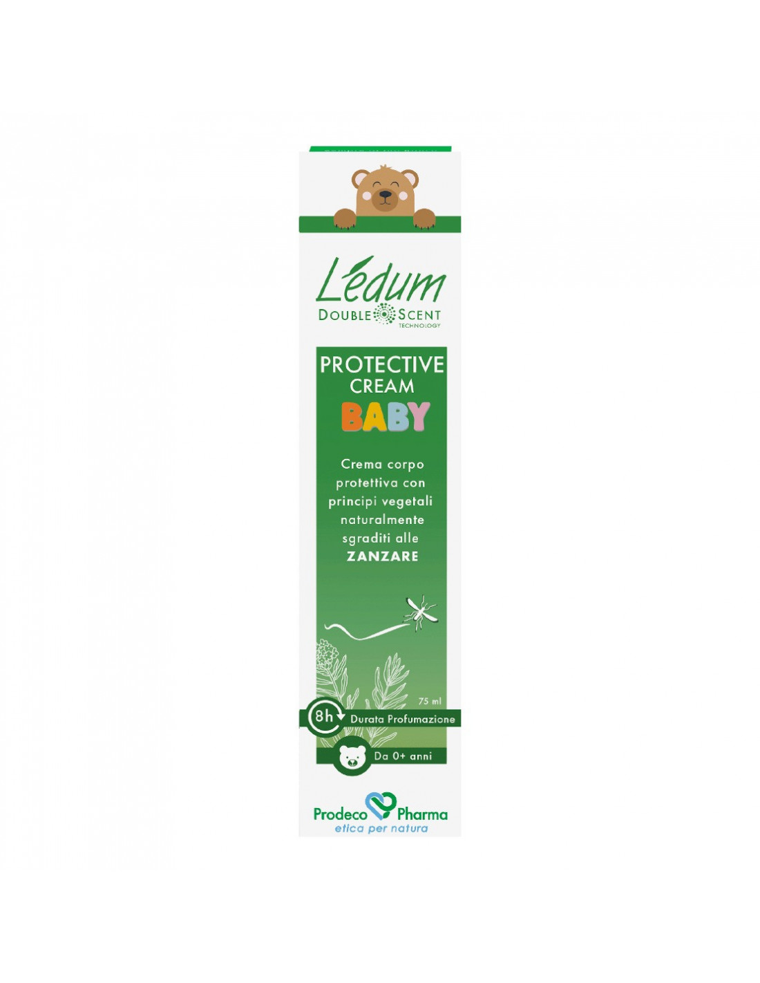 Crema protettiva adatta alla pelle dei più piccoli fin dalla nascita, formulata per proteggere il corpo dalle punture di insetti in modo naturale. La formulazione contiene una miscela di cinque oli essenziali (Ledum palustre, geranio, palmarosa, curcuma e Tarchonanthus) e isolati del cocco, le cui note olfattive sgradite alle zanzare creano una naturale profumazione barriera che riduce l’attrattività della pelle. Gli oli di soia, cocco e neem, ad azione emolliente e nutriente, forniscono ulteriore protezione. La presenza di estratti fermentati di mirto e lentisco contribuisce a bilanciare l’odore della pelle, a rinforzare la barriera cutanea e a promuovere l’equilibrio del microbiota. L’acqua di amamelide calma la pelle e riduce eventuali arrossamenti. LEDUM DS PROTECTIVE CREAM BABY lascia la pelle asciutta, senza ungere.