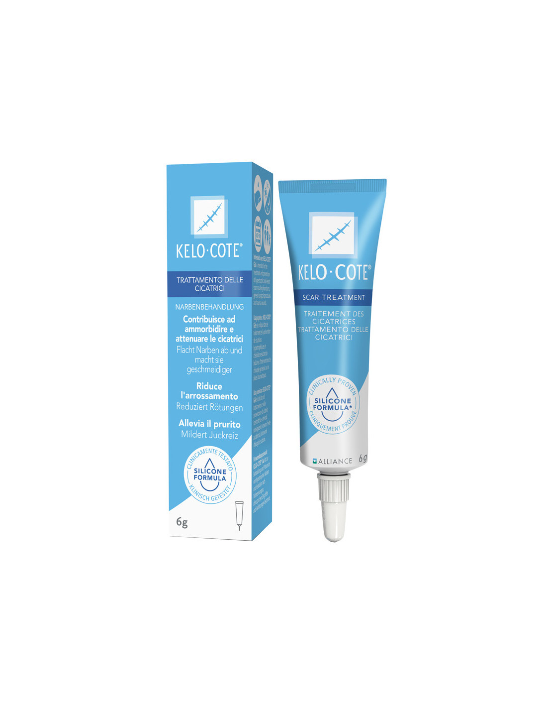 Solo per uso esterno. Non usare in caso di ipersensibilità a uno qualsiasi dei componenti della formulazione. Evitare il contatto diretto con occhi, mucose, ustioni di terzo grado e ferite aperte. KELO-COTE Gel non deve essere usato in condizioni dermatologiche che compromettono l’integrità della pelle. In caso di irritazione, interrompere l'uso e consultare il medico. Il prodotto può macchiare gli indumenti se non è completamente asciutto.