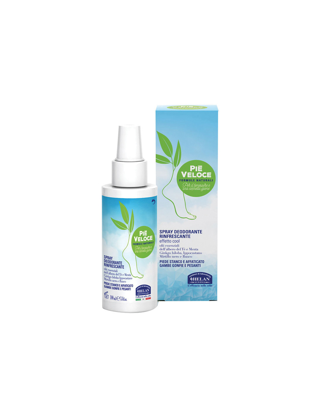 Spray dall'azione rinfrescante grazie agli olii essenziali dell'albero del Tè e Menta che ostacolano l'insorgenza dei cattivi odori, al Ginkgo biloba, antiossidante che preserva i vasi sanguigni e i capillari, rendendo le loro pareti più elastiche con conseguente miglioramento del microcircolo, all'Ippocastano, Mirtillo nero e Rusco la cui combinazione ad azione vasocostrittrice, contribuisce a migliorare il microcircolo, contrastando la stasi venosa a beneficio della circolazione sanguigna e con un immediato senso di leggerezza delle gambe.