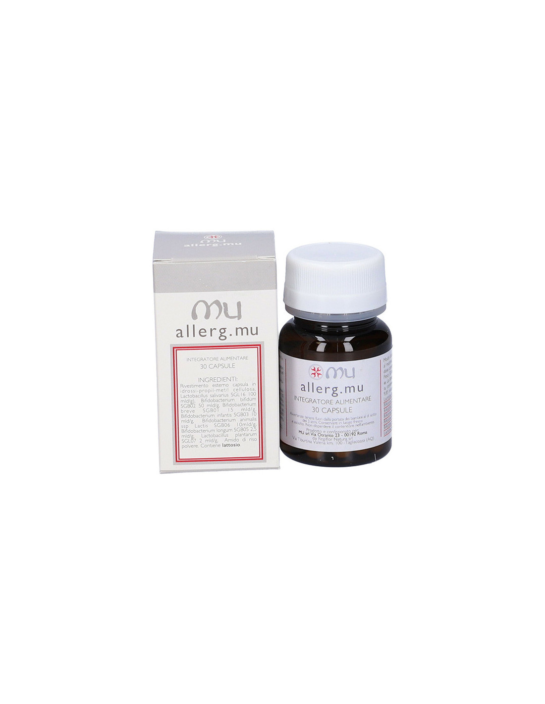 Integratore alimentare composto da 30 capsule. Allerg.mu è un integratore naturale a base di probiotici attivi. Sono stati selezionati i migliori ceppi batterici che, secondo gli ultimi studi, favoriscono la produzione della diamminossidasi (DAO) da parte delle cellule enterocromaffini intestinali e la conseguente eliminazione dell’istamina dall’organismo.